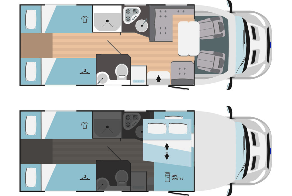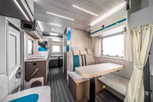 Το Rimor Kilig 78 Plus είναι ένα ευέλικτο και οικογενειακό αυτοκινούμενο, ιδανικό για όσους θέλουν άνεση και πρακτικότητα σε πιο συμπαγείς διαστάσεις. Με εμπρόσθιο drop-down κρεβάτι, πίσω μόνιμο διπλό κρεβάτι και δυνατότητα επιπλέον κλίνης στην τραπεζαρία, προσφέρει φιλοξενία για έως 5 άτομα.
