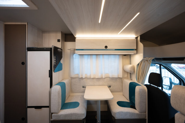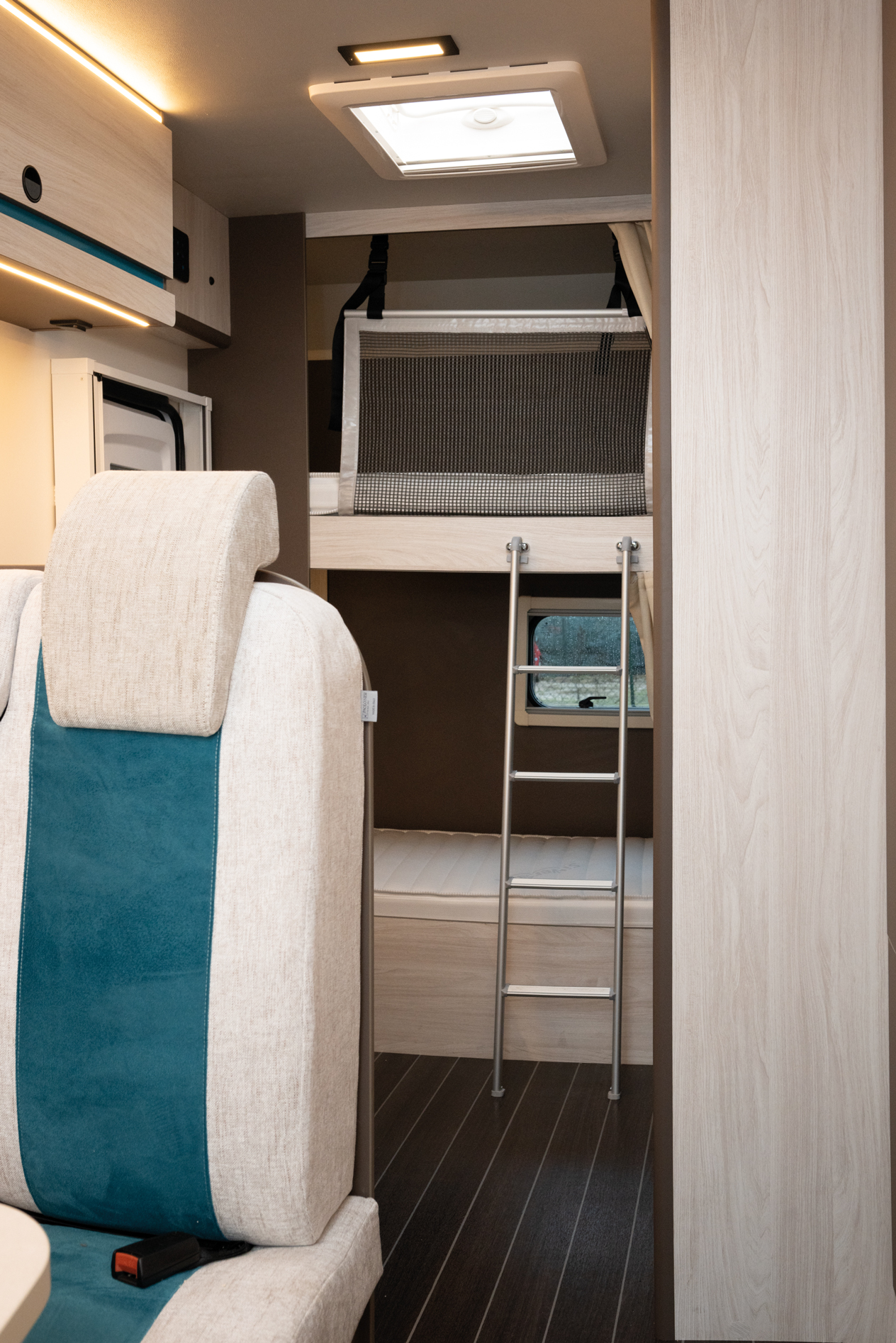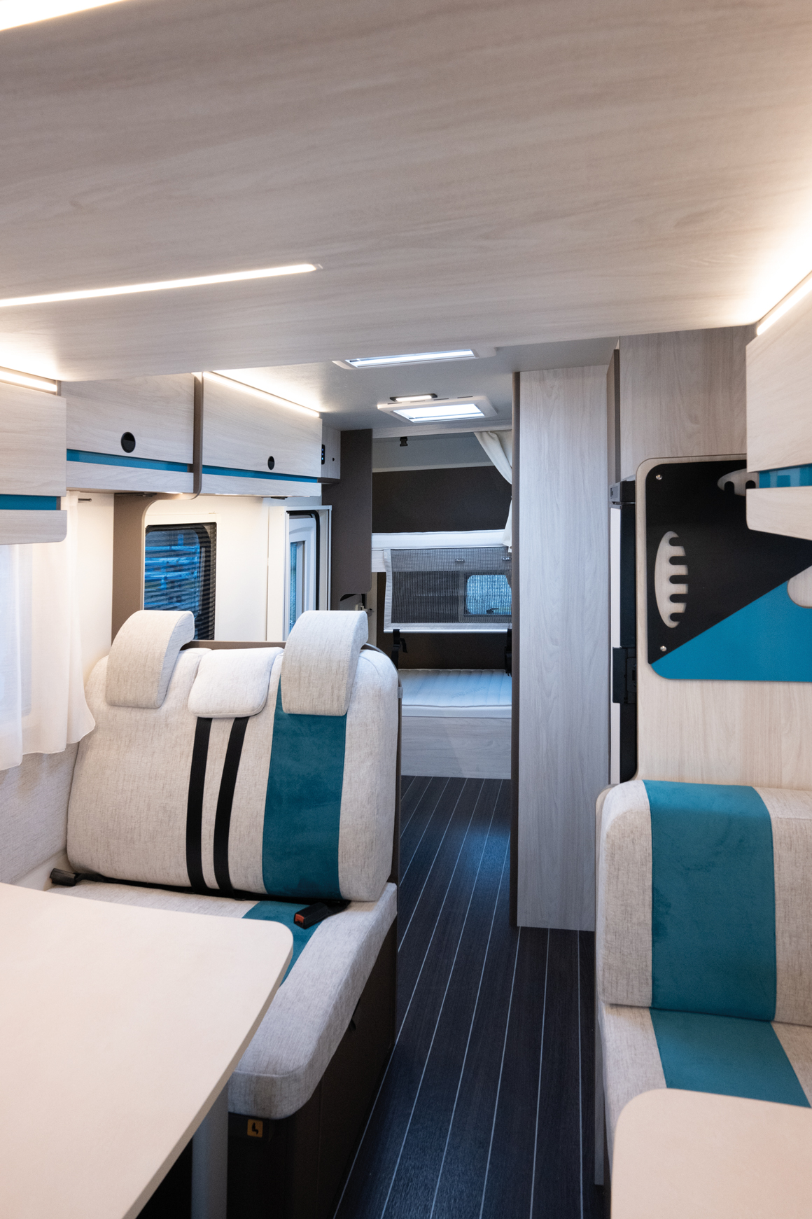Το Rimor Kilig 9 είναι ένα ευρύχωρο οικογενειακό αυτοκινούμενο με δυνατότητα φιλοξενίας έως και 7 ατόμων. Με overcab διπλό κρεβάτι και πίσω κουκέτες, αποτελεί ιδανική επιλογή για μεγάλες οικογένειες ή παρέες που θέλουν άνεση και ξεχωριστούς χώρους ύπνου. Ο συνδυασμός λειτουργικής διαρρύθμισης και μεγάλου εσωτερικού ύψους προσφέρει άνεση σε κάθε ταξίδι.